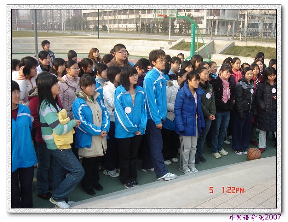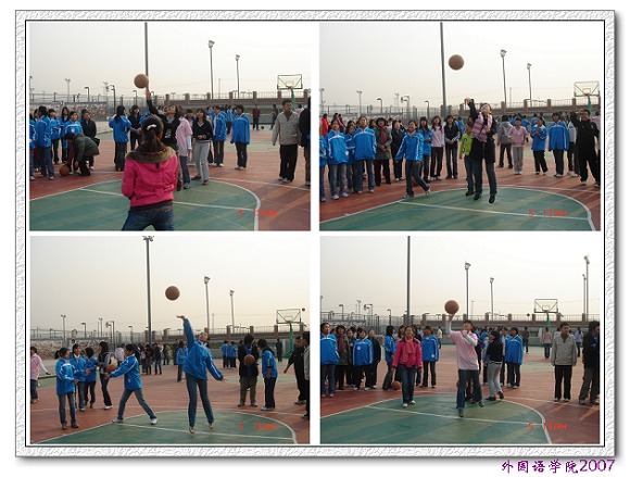 12月5日下午,良乡校区篮球场和田径场活跃着一群年轻的人,外国语学院2007级宿舍向心力大赛在这里开始。此次活动是外国语学院2007级宿舍文化节的系列活动之一,年级90余名学生以宿舍为单位,为了宿舍的团结和荣誉,展开了激烈而欢乐的竞赛。