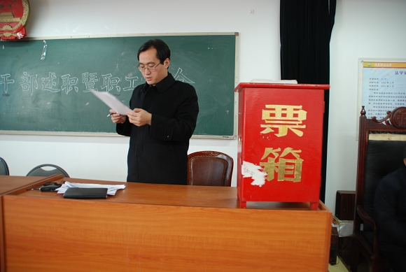 述职结束之后,学院教职工对处级干部进行了民主测评