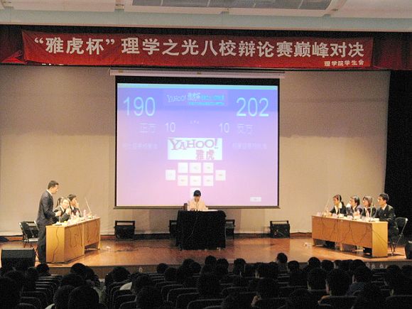 时值初冬,寒意渐浓,但北京航空航天大学学术交流中心却热闹非凡。12月9日晚,“雅虎杯”理学之光八校辩论赛总决赛在这里火热上演。来自京城八所高校的辩论高手齐聚一堂,唇枪舌剑尽显风流。