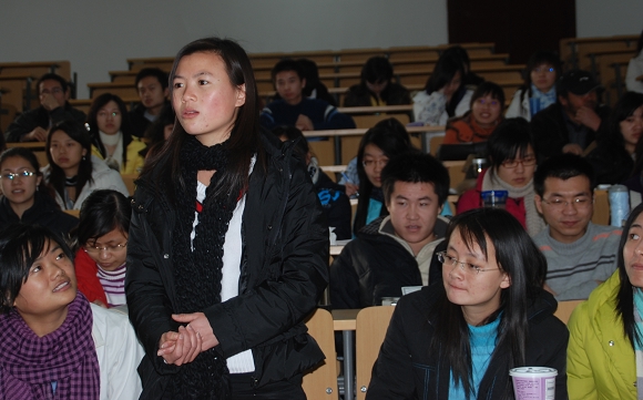 报告结束后,同学们踊跃地向纪佃澎老师提问,并积极地阐述着自己的观点和想法。