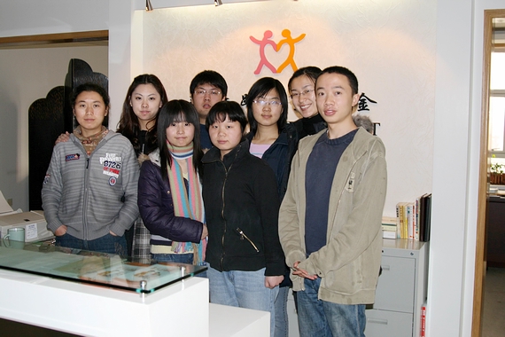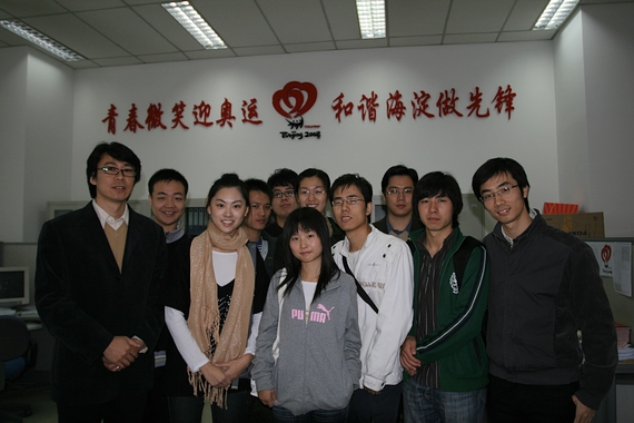 在海淀团区委的办公室内与负责奥运志愿者事宜的工作人员合影