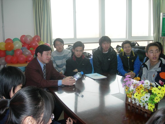 当天,邓玉林院长还与其所联系的班级——06110702班的同学一起召开了一次特别的班会,班长吴国松同学介绍了班级的基本情况,院长也给班级的同学提出了要求和希望,一定要努力学习,发扬团队精神,将班级建设成为一个真正团结奋进的优秀集体。