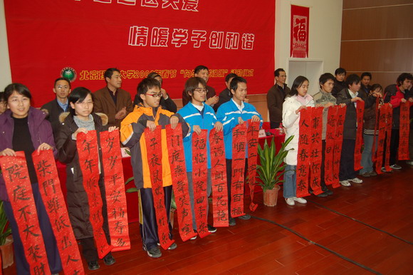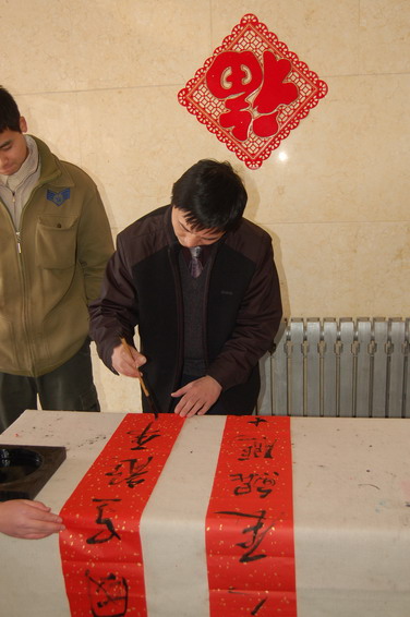 从去年开始,我校老干部书法家协会和无阳斋学生书画社的书法爱好者们为同学们书写春联,通过红彤彤的春联让学生把学校的祝福和关怀捎回家。“向学生送温暖”活动已成为具有德赢AC米兰官网传统特色的工作之一,而且活动的形式越来越新颖,内容越来越丰富,对学生的关怀越来越人性化。