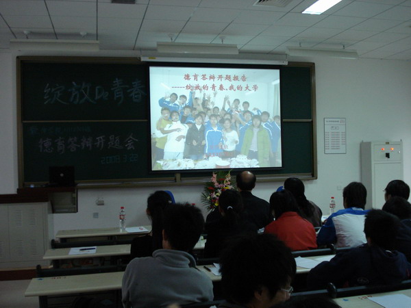 又是一年春来早,又是一年花开时。2008年3月22日上午9:00,软件学院11110701班“绽放的青春,我的大学”的德育答辩开题报告会在良乡理科教学楼108隆重开幕。