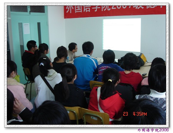 外国语学院2007级在本学期学生活动任务较重,运动会、德育开题、外语文化节等一系列活动需要学生干部的协助和支持,希望入选的同学们能够相互团结,注重协作,彼此诚信,以人为本,为构建和谐学院、和谐年级作出贡献。