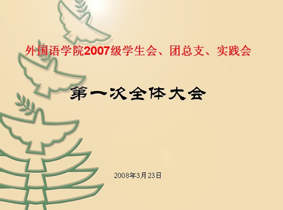 3月23日,外国语学院2007级在学院活动室召开了学生会、团总支、实践会2007级全体学生干部大会,会议由外国语学院2007级辅导员张磊老师主持。