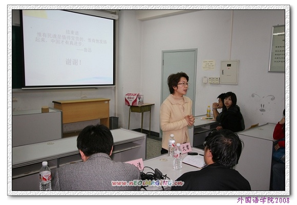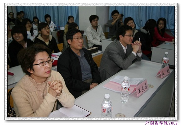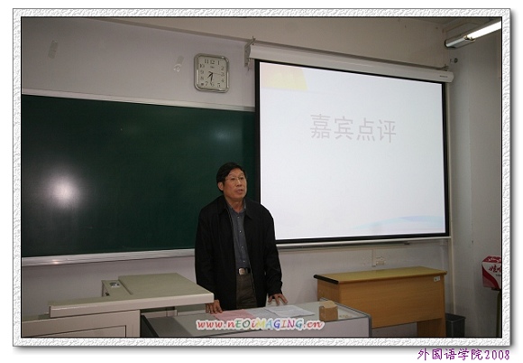随后,外国语学院党委书记王文清老师对同学们的演讲和本次论坛涉及到的时事作了点评。他认为本次活动形式新颖,内容生动,选题恰当,将知识、时事、体会全面地结合在一起,十分成功。他充分肯定了同学们的表现,并对每组同学的展示做了细致的总结和点评。同时,结合十七大精神和自身经历,他对本次论坛涉及到的时事发表了精辟的见解,进一步加深了同学们对十七大精神的理解。