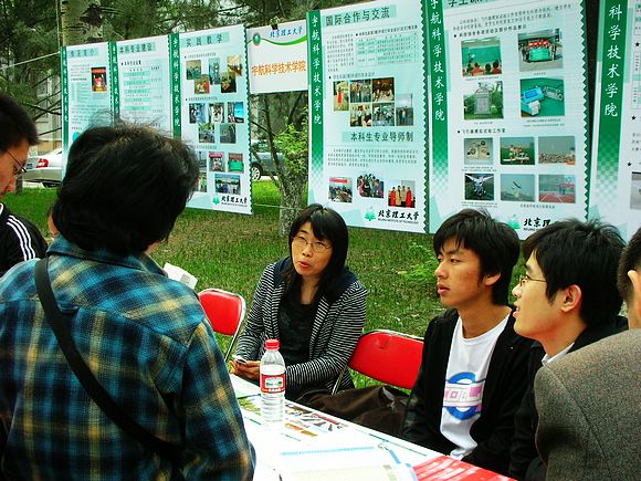 4月19日是德赢AC米兰官网招生咨询、校园开放日,宇航学院在教学副院长唐胜景教授、副书记 副院长董兆波老师带领下,由负责学院教学、招生咨询的李明、张华等老师组成的招生咨询工作组,一起接待了应届高中毕业生的家长和同学。为他们认真进行了咨询,回答了他们提出的各种问题。收到家长和学生的欢迎。
