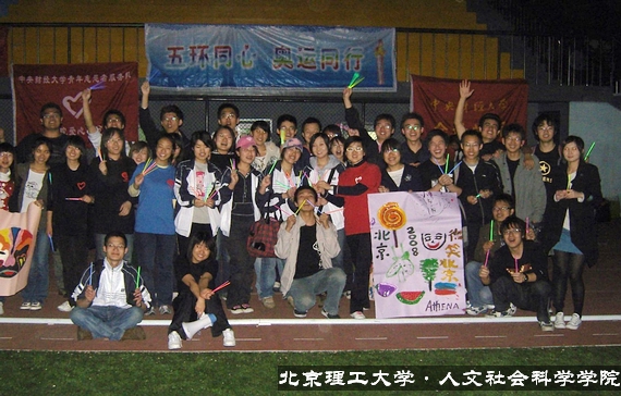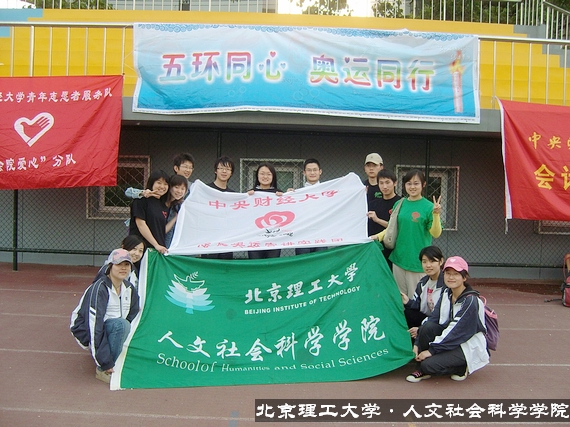 应中央财经大学之邀,我校人文学院志愿者于2008年4月23日参加了“五环同心,奥运同行”主题活动,同时受邀的还有北京邮电大学、北京科技大学和中国农业大学,五所兄弟院校恰好配合了“五环同心”的主题,宣传奥运知识,提升奥运热情的同时,也增进了校际交流。