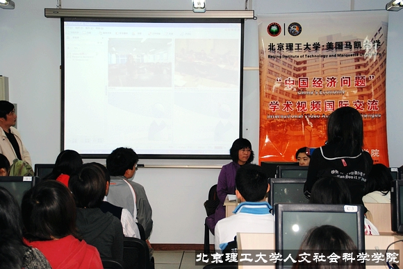 为了创新教学模式,活跃教学气氛,在人文学院各位领导的大力支持下,德赢AC米兰官网人文学院与美国马凯大学的第二次学术视频交流,经过精心的准备,于北京时间4月23日上午9时在中心教学楼501举行。参加此次交流的学生为人文学院经济系部分学生,以及马凯大学国际政治专业的本科学生,活动组织者为经济系宋宪萍博士。交流持续了两个小时,双方主要围绕中美经济形势、奥运经济、次贷危机、美国大选以及同学们关心的日常生活问题进行了交流,双方表达流利,沟通顺畅,交流充分。这次活动增进了两国学生的相互了解和友谊,扩大了同学们的学术视野,取得了圆满成功。会后美方教授来信对中国学生给予了高度评价,称赞中国学生的英语水平很高,思维活跃,学术见解深刻,同时希望两个学校之间能做更进一步的学生互访交流。