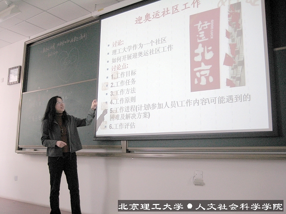 为了更好的了解和参与奥运,及专业联系实际,2008年4月23日,09220701班在理教楼109室,开展了别开生面的“迎奥运社区工作”团日活动。活动围绕社会工作者如何介入奥运进行讨论。