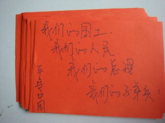 同学的心声:我们的国土,我们的人民,我们的总理,我们的子弟兵!