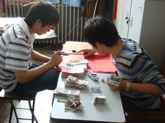 工作人员正在认真统计核算捐款金额