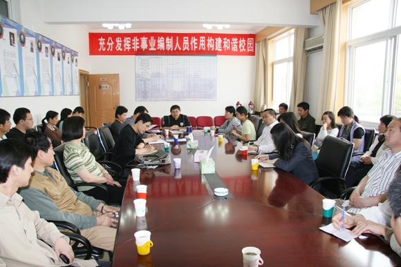5月21日下午,校工会在远志楼三层会议室召开了 “充分发挥非事业编制人员作用、构建和谐校园” 为主题的学校非事业编制人员代表座谈会。校工会常务副主席蔡本睿、副主席王建光,校工会兼职副主席、后勤集团党委副书记、工会主席姜金凤,人才交流开发中心主任范友联,以及继续教育学院、劳动服务管理中心负责人和非事业编制人员代表参加了座谈会。