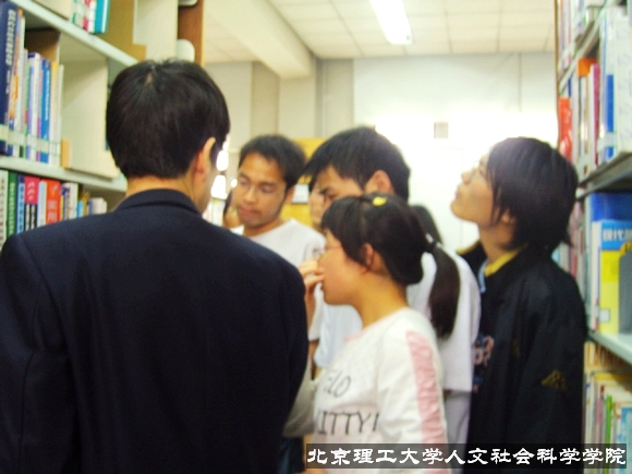 阅览室的一名负责人为我们讲解排书的技巧