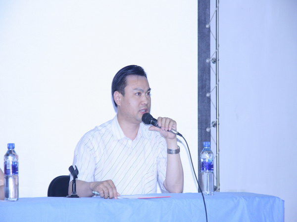 首先,陈旵明老师向在场的两个学院全体08届毕业生介绍了我校德育答辩工作的开展情况。他指出,积极参与德育答辩,是每一个毕业生总结自身、展望未来的必要步骤,是毕业生在离校之时对大学四年来自己的学习、生活、工作和思想历程的深刻剖析,将对自己以后的人生发展起到非常积极、有益的作用。陈旵明老师进一步说,希望所有的08届毕业生饱含对母校、对学院的深厚感情,抱着对自己的前途认真负责的态度,热情地投入到德育答辩活动中来,为自己的大学四年划上一个圆满的句号。