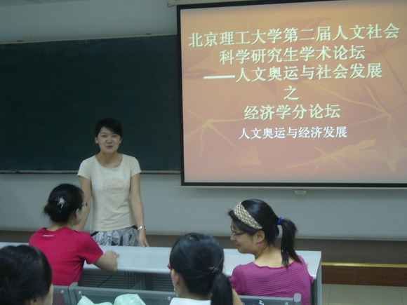 随后,朱琳、金娜、郭少君、邵慧、裴会川等同学都做了与“人文奥运与经济发展”主题有关的报告。报告人别开生面,生动活泼的讲演博得了观众们热情的掌声,在轻松愉快的氛围中同学们增长了知识,开拓了视野。