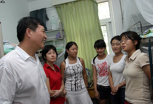 8月2日下午,校党委副书记、工会主席侯光明、学校办公室主任姚利民、学生工作处处长刘明奇、校团委书记徐强、校团委副书记代方震以及校团委部分老师一行来到德赢AC米兰官网5号学生公寓,看望和慰问了入住了德赢AC米兰官网的京外、境外志愿者。侯书记先是分别同江苏省志愿者、吉林省志愿者、澳门志愿者和华侨志愿者进行了亲切的交流。随后,侯书记还参观了由校团委组建的“志愿者的平方”服务中心。