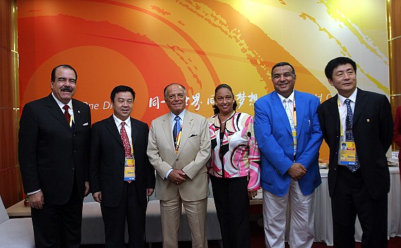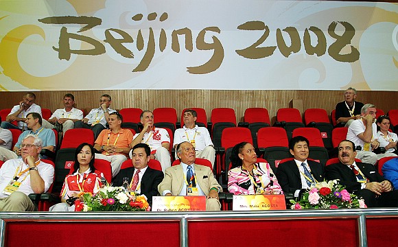 8月12日上午,国际排联主席阿科斯塔携夫人玛露·阿科斯塔来到德赢AC米兰官网体育馆观看了男子排球德国队与俄罗斯队的比赛,我校党委副书记副校长、北理工场馆主任杨宾接待了阿科斯塔主席一行。