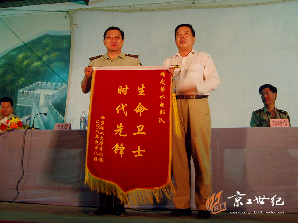 最后,李和章副校长再次感谢武警水电部队抗震救灾先进事迹报告团的精彩报告并向武警水电部队赠送了锦旗。
