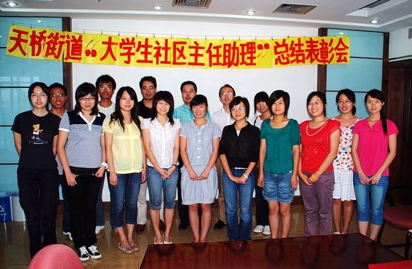 2008年8月22日下午,大学生社区主任助理总结表彰会在天桥街道办事处举行,为期一个半月的大学生社区主任助理社会实践画上了圆满的句号。