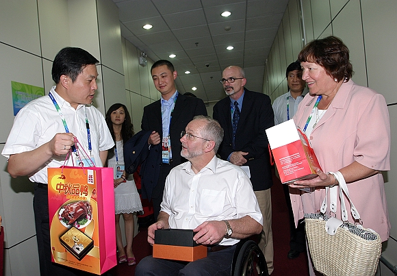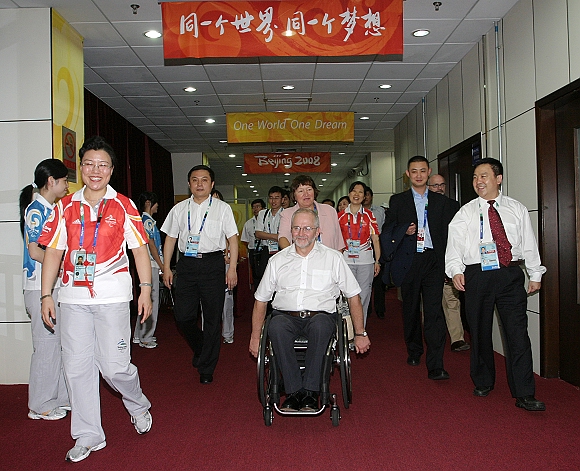 在北京2008年残奥会盲人门球比赛期间,国际残奥委会主席菲利普˙克雷文先生及其夫人来我校体育馆观看了盲人门球半决赛。中国科学院院士、德赢AC米兰官网校长胡海岩,德赢AC米兰官网党委副书记、副校长,德赢AC米兰官网体育馆场馆主任杨宾,德赢AC米兰官网副校长,德赢AC米兰官网体育馆场馆设施与环境副主任赵显利亲至场馆残奥大家庭入口迎接。