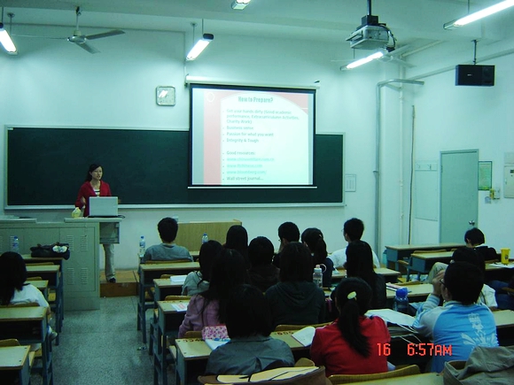 在求职部分,来自北京大学05级计算机的崔靖雯、果实同学分别给大家分别介绍了风险投资以及四大会计师事务所实习经历和准备过程。