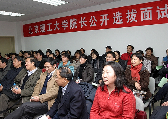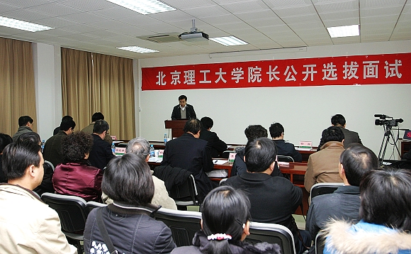 2008年12月3日全天,我校学院院长公开选拔面试工作继续进行。今天进行的计算机科学技术学院、软件学院、人文社会科学学院、法学院院长的公开选拔面试吸引了来自国内外众多知名大学学者前来竞聘。14名通过资格审查和常委会初审的人员竞聘这四个学院的院长职位。其中不乏来自中科院、中山大学、中国科学技术大学、山东大学、中国政法大学、外交学院等国内一流高校的知名学者。