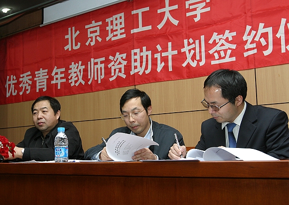 人事处赵文祥副处长主持会议,并宣布入选2008年度“优秀青年教师资助计划”和择优二次资助的教师名单。 赵文祥副处长与入选的青年教师代表签订了《优秀青年教师资助计划资助合同书》。