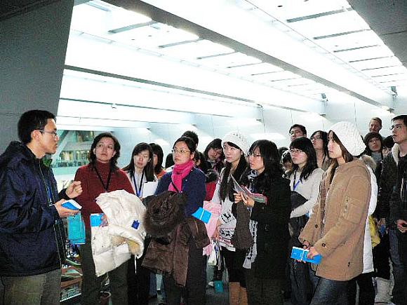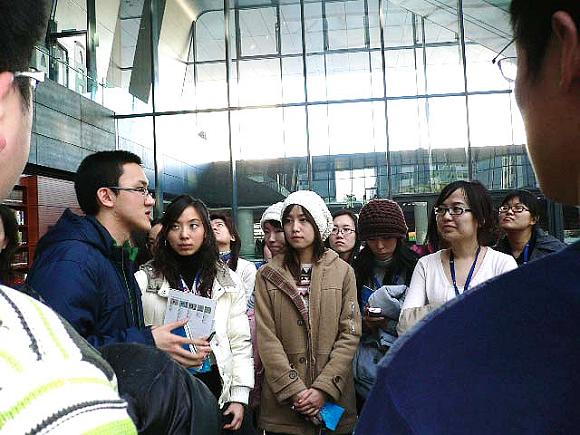 参观主体是来自2005级的23名德语专业本科生和2008级德语语言文学硕士生,他们目前正在进行毕业论文的开题工作。由于理工大学图书馆德文书籍的缺乏和专业资料的稀缺,使得他们在进行文献检索的时候很难搜集到有用的、对口的资料。这次新国图之行为他们在国内最大、最全面的资料库里自主查询、借阅资料提供了极大的帮助。从一层到五层,从新馆到旧馆,师生们对每一个分区都进行了参观。从中文资料到外文资料,从资料的阅览、外借再到归还,这些琐碎却非常实际的问题在图书馆现场工作人员的帮助下,都一一得到了解答。