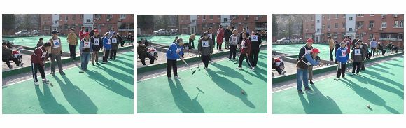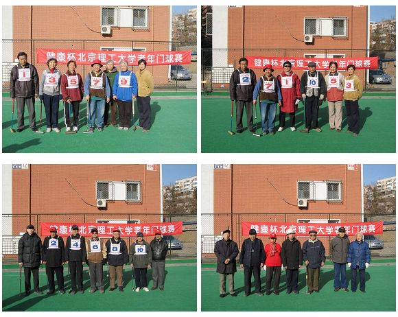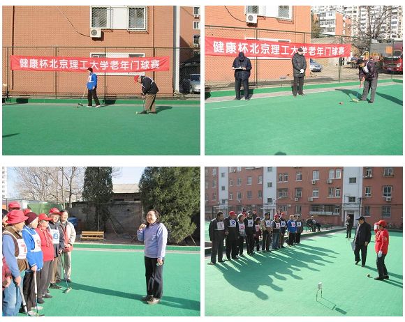 (右下)门球队裁判(我校离休干部)向队员们宣布规则
