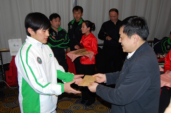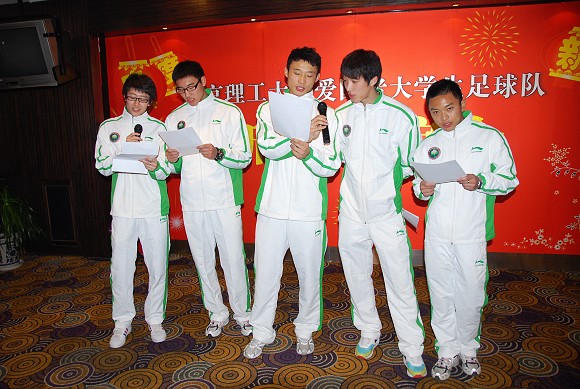 与其他球队已经开始集训以及体能储备不同,北理工足球队因为队员们都要进行期末考试,包括新赛季的集中备战以及YOYO体测等问题都相应的做了调整,队员们刚刚结束期末考试,进行了期末总结,而学校领导更是根据球员们08赛季学习与踢球方面的表现,发放了相应数目的体育奖学金。队员们也向校领导赠送了球队队服。