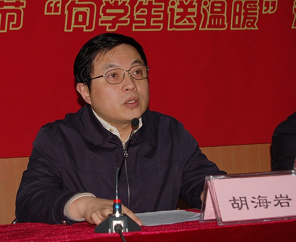 随后,胡海岩院士发表了热情洋溢的讲话。他首先代表学校党委和行政向与会同学及其家人致以新春诚挚的祝福,他指出:“学生资助工作是解决学生最关心、最直接、最现实利益问题的主要渠道,是构建社会主义和谐校园的核心工作之一。长期以来,学校坚持在大学生思想政治教育中注重关心人、帮助人,一直把学生资助工作作为关心学生、实施德育的重要内容常抓不懈。针对存在经济困难学生这个特殊群体的状况,坚持以学生为本,为学生办实事办好事,采取一系列帮困助困措施,不断改进和创新工作方式和方法,不断完善资助体系的建设,努力解决大学生的实际困难,帮助贫困大学生完成学业,努力把党和政府对大学生的关怀落到实处。学校对于家庭经济困难学生的成长成才寄予了更多的关注和希望,学校中也有许多自强不息的优秀学生以新一代青年特有的方式诠释着延安精神的时代新意,传承着延安精神的思想精髓。”他勉励所有家庭经济困难学生能以传承延安精神为己任,以更加乐观、昂扬的精神面貌来面对暂时的困难,并能用自己自强不息的精神带动其他同学共同进步,为构建社会主义和谐校园尽自己的一份力量。