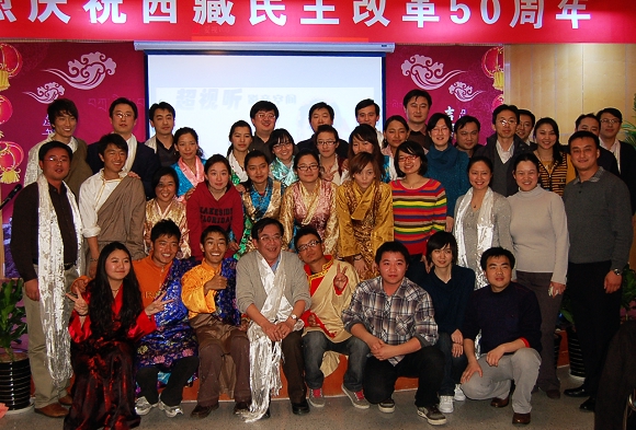 李和章与藏族同学欢聚一堂,祝福所有的藏族同胞“扎西德勒”,在新的一年取得更大的成绩。
