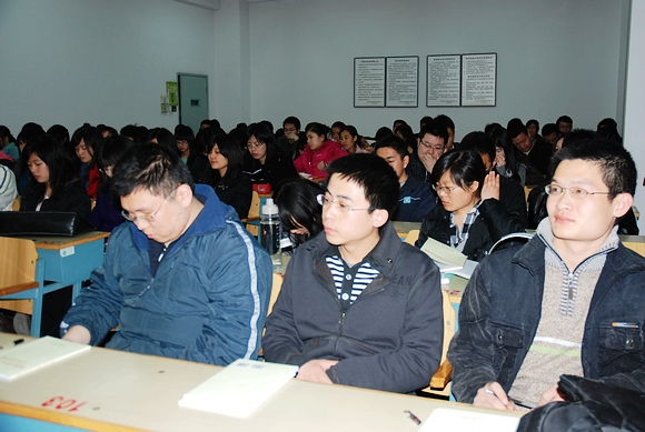 之后,负责本科生和研究生党建工作的顾老师和辅导员彭明雪也分别做了动员发言。顾老师强调这是一次难得的学习的机会,希望大家要充分利用好这次机会,踏踏实实学习,不要把时间浪费了。顾老师指出,“两会”以后对我们党员提出了更高的要求,希望学生党员加强学习,加强自身素质的修养,能从学习和实践中切实得到提高。彭明雪老师结合自己的工作经历跟大家讲述了如何学习和实践科学发展观,作为党员一定要认真做好自己应该做的事情,为学校和学院争光,即使将来走上了社会依然能为学校和学院争光。