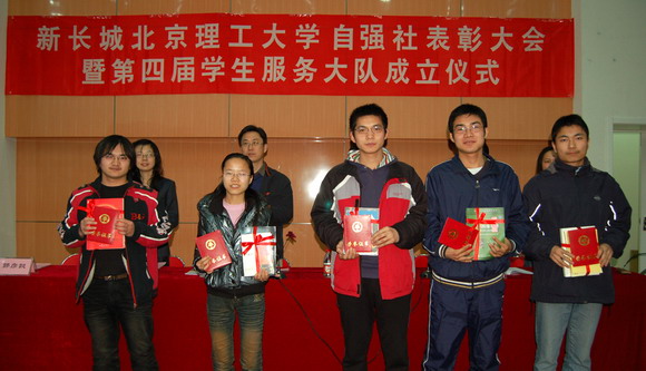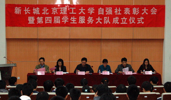 2009年3月25日下午,新长城德赢AC米兰官网自强社表彰大会暨第四届学生服务大队成立仪式在我校良乡校区综合教学楼演艺厅举行。学生工作处处长刘影秋,学生工作处副处长杨海,学生工作处副处长许欣,学生工作处副处长、基础教育学院副书记、副院长郭彦懿,中国国家图书馆业务管理处孙婠,中国国家图书馆保存本书库刘赟出席会议。学生工作处、基础教育学院相关教师,270名2008-2009学年获得资助学生代表参加会议。会议由学生工作处副处长杨海主持。