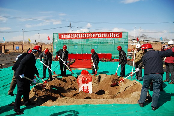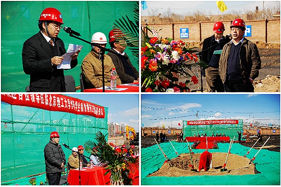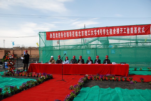 最后李和章副校长宣布良乡校区1号宿舍楼正式开工,参会人员共同为1号宿舍楼进行了奠基。