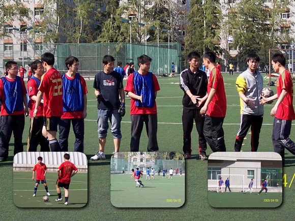 由校团委、校研工委、校研究生会联合各学院研工委和研究生会共同举办的2009年"共青杯"研究生足球联赛于4月5日展开了四分之一决赛的紧张角逐。上午9:00比赛在西操场拉开帷幕,与小组赛不同的是所有的决赛阶段比赛均由国家一级裁判执哨。