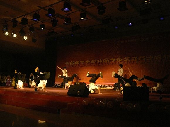 紧接着,街舞协会带来的街舞表演同样是激情无限,赢得了在场观众的热烈喝彩。人民大学手语协会的手语表演,场面温馨感人。我校毕业校友带来的调酒表演掀起了现场互动小高潮。良乡校区空竹协会的空竹表演技术娴熟,观众们不禁啧啧称叹。跆拳道协会的表演更是助推晚会的高潮迭起。飞踢纸板、连环踢、手劈大理石、飞踢刀尖苹果等,看得观众观众们屏息凝气,聚精会神,生怕错过哪一个精彩环节,直到谢幕时,回过神的观众才报以如雷掌声。