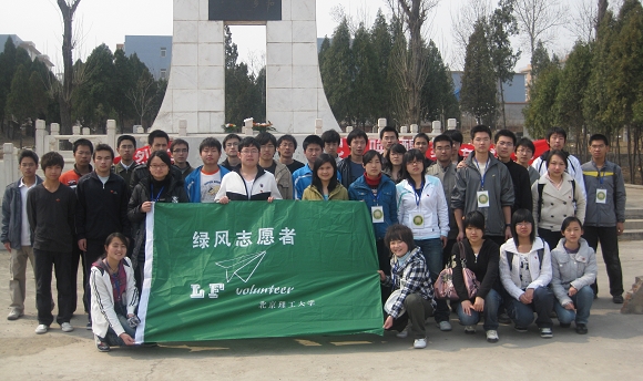 2009年4月3日,时值清明祭扫之际,机械与车辆学院绿风志愿者协会组织举办了“向逝去的他们致敬”扫墓活动,组织同学前往我校良乡校区附近的无名烈士墓园进行祭扫活动,以此来重温历史,了解革命烈士的英雄事迹,祭奠为祖国建设付出生命的烈士们,同时回顾祖国建设六十年来的风雨历程,引导大学生弘扬爱国主义精神,加强爱国主义教育,增进爱国主义情感。