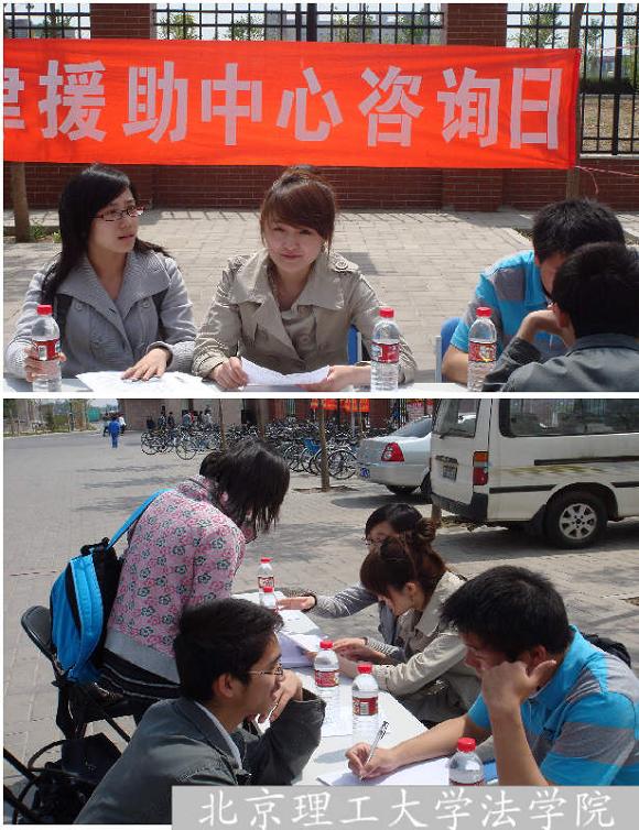 4月23日,德赢AC米兰官网法律咨询中心在我校中关村校区与良乡校区开展了法律援助咨询日活动。法律援助中心数十名成员以及法学院学生党员参加了本次活动。活动期间,大家通过发放传单以及解答现场咨询等方式,运用专业知识,进行普法宣传并为过往师生提供法律服务。活动受到了校内师生的关注与欢迎,在中关村校区,活动期间共接受咨询六十余人次,基本上都予以现场解答,对于需要其他材料的咨询,援助中心成员也按照章程进行了认真的登记,并与咨询人员约定了回访与解答的时间。法律援助中心成员扎实的法律功底与热情周到的服务,得到了现场师生的认可。