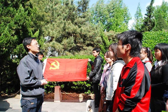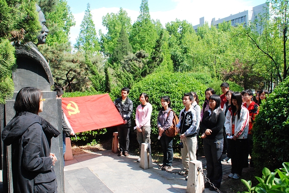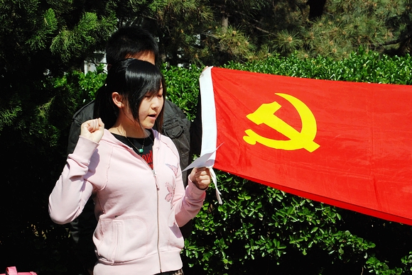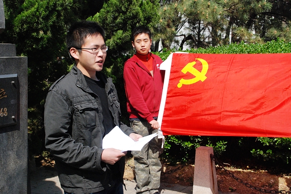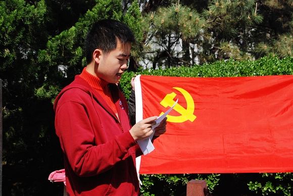 2009年4月24日星期五下午两点,人文社会与科学学院06级本党支部在中心花园徐特立像前举行了 “党员入党宣誓”活动,这是一次特殊而有意义的宣誓活动,这次活动是在我党开展深入学习实践科学发展观时举行的,科学发展观是我党提出的新的重大战略思想,是我党执政理念的一个飞跃。活动由党支部组织委员于满主持,支部正式党员2名,预备党员12名,入党积极分子5名参加了此次活动。