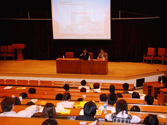 刘明奇处长以“文化与素质”作为讲座的主要内容,从10个方面展开,从《功夫熊猫》中的特色教育、个性培养到牛传欣学长的先辈带后辈、一辈传一辈的延安精神;从大学生应该学习的生活知识、生存本领、生命意义到提出大学生应该具备的道德品质、文化认同、敬业精神、团队合作、创新能力等各项素质;从大学生情商的培养引出文化的内涵和本质,提出了文化的累积过程:制度—习惯—作风—精神—文化;从现在流行的通识教育的发源史谈学生培养,认为大学生做人做事应该遵循以下基本原则:诚信、态度、成败,同时给同学们提出三条忠告和建议:(1)三观教育不是说教:提升三观到自我教育、自我反思;(2)职业生涯规划:亦早不宜迟;(3)精神塑造:从读书开始;最后刘处长以诙谐幽默的寓言故事收尾,并预祝同学们成就自己的领袖事业。