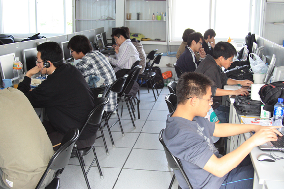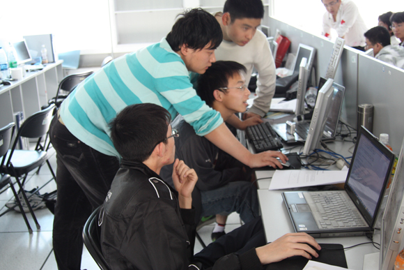 是科学的集训管理制度。虽然只是四天的集训,但集训队内却制定了严格的制度,集训开始有动员大会,集训结束有总结汇报,每天三次考勤,每天安排值日人员……。小小的锅炉房机房,容纳了近四十个集训队员和12个06级学长,但这四天都秩序井然,干净整洁。任何时刻,这里都没有打闹,没有喧哗,有的只是静静敲打键盘的声音和同学们的讨论。
