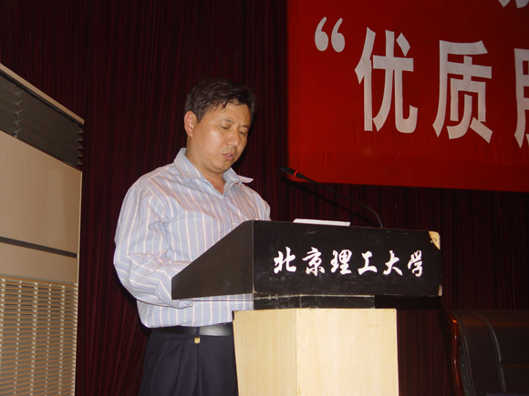 学校党委副书记、副校长杨宾同志在会上做了重要讲话。首先,他对我校膳食工作给与了充分肯定,他说北理工膳食在过去的许多年里取得了很好的成绩,不仅得到了广大师生员工的认可,同时也得到了兄弟院校的赞誉,这是广大膳食员工共同努力的结果。特别是在奥运期间,北理工膳食得到了奥组委的高度评价。同时杨书记也指出了餐饮工作还存在着一些问题及差距,要让全体师生员工满意,还有许多工作要做。膳食是后勤系统中的核心,是师生员工接触最多的窗口单位,餐饮服务质量直接影响着后勤形象,希望通过这次活动能够切实提高餐饮服务工作的水平、质量。他对全体餐饮员工提出三点希望,一要以积极的态度自信地投入工作;二要有责任心,以主人翁的精神,尽职尽责尽心地去做好工作;三要有创新精神,要适当调整菜谱、翻新花样品种,将餐饮工作做精、做活。