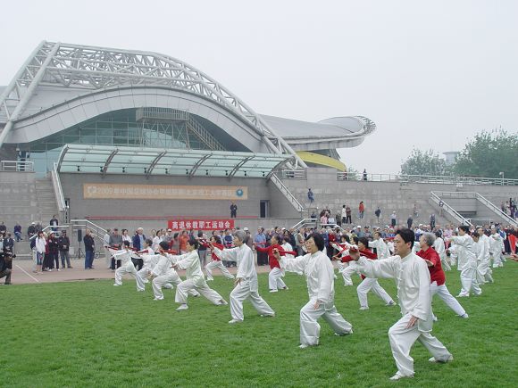 开幕式上,由离退休教职工为主组成的学校太极拳协会表演了太极拳、太极功夫扇,学校木兰拳协会表演了木兰双环操等。