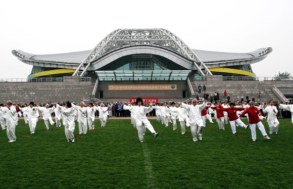 开幕式上,由离退休教职工为主组成的学校太极拳协会表演了太极拳、太极功夫扇,学校木兰拳协会表演了木兰双环操等。