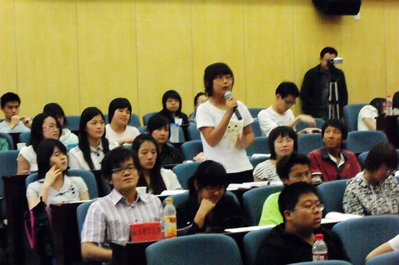 然后,针对专家介绍的内容,各高校的学生分别进行讨论,并将讨论的成果进行简单的汇总,由代表上台表达观点和疑问。在社会工作职业化问题上,我校学生提出了NGO本土化需要和社工职业化的对口问题、NGO和社会工作在理念、工作方法等方面的关系;中国人民大学的学生则进一步探讨社会工作在大陆发展的影响因素,同时介绍了三种主要的运作的模式;北京师范大学通过分析NGO和社会工作的现状探讨了社会工作在大陆的发展前景。中华女子学院和中国青年政治学院、首都师范大学分别就社会工作在中国的社会认同度和相关制度进行了讨论。