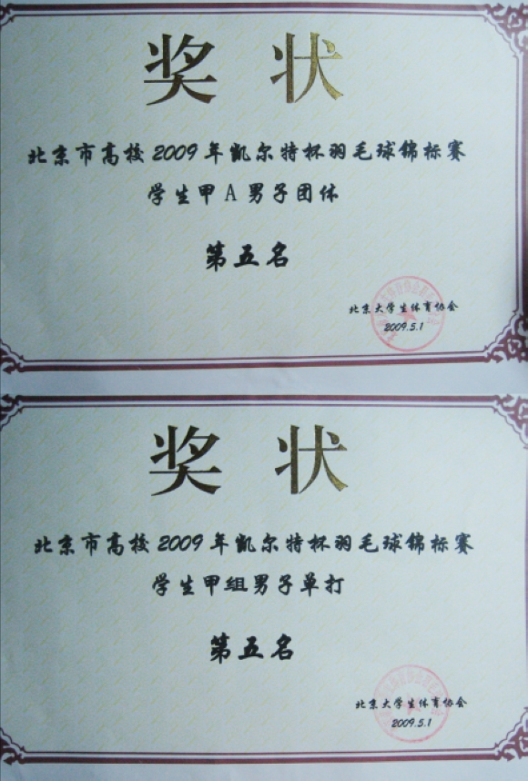 我校羽协参加北京市高校2009年羽毛球锦标赛、第三届海淀区羽毛球高校联赛