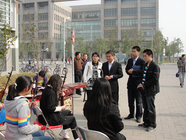 24日上午,中关村校区的2007级、2006级艺术团各分团团长和部分成员在校团委组织部部长、大学生艺术团指导教师张舰月老师的带领下来到良乡校区,面向2009级和2008级学生展开招新活动。本次招新在两周前通过“北理人网站”、“网协视听空间”、“北理FTP联盟”及悬挂海报、条幅,广播站广播等多种渠道,在2008级和2009级学生中广泛宣传。在招新现场,民乐团、手风琴团都到现场进行演奏,吸引众多学生的目光。